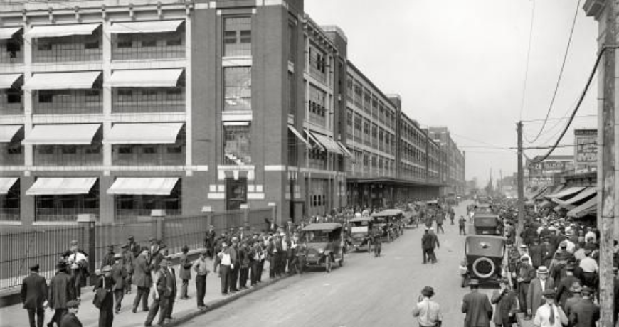 In 1913, the plant began manufacturing Model T automobiles using its new assembly-line production invention. However, following Henry Ford’s global clarion call in 1914 announcing that his company was paying assembly workers $5.00 a day, thousands of people from the South and around the world poured into Highland Park, a city surrounded on three sides by Detroit. Every segment of Highland Park benefited from the city’s growing tax base due to the population boom, including city services, neighborhoods, retail businesses, and schools.