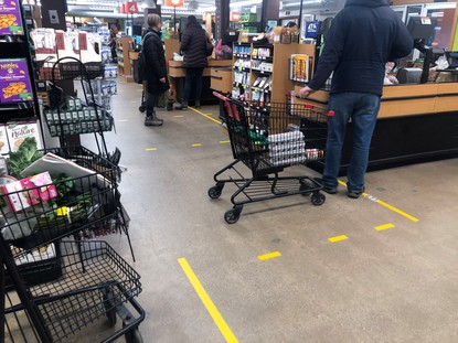If you must go in public, the CDC has suggested to stay at least 6 ft from other individuals. I’ve observed people congregating in front of displays, shelves and coolers in close proximity. I suggest waiting at a distance. Give the person browsing space and time to select the item(s) they need, then you take yours turn. There are many stores with markers on the floor to keep individuals apart during the check-out process, but keep the 6 ft suggestion in mind as a rule of thumb throughout your shopping trip.