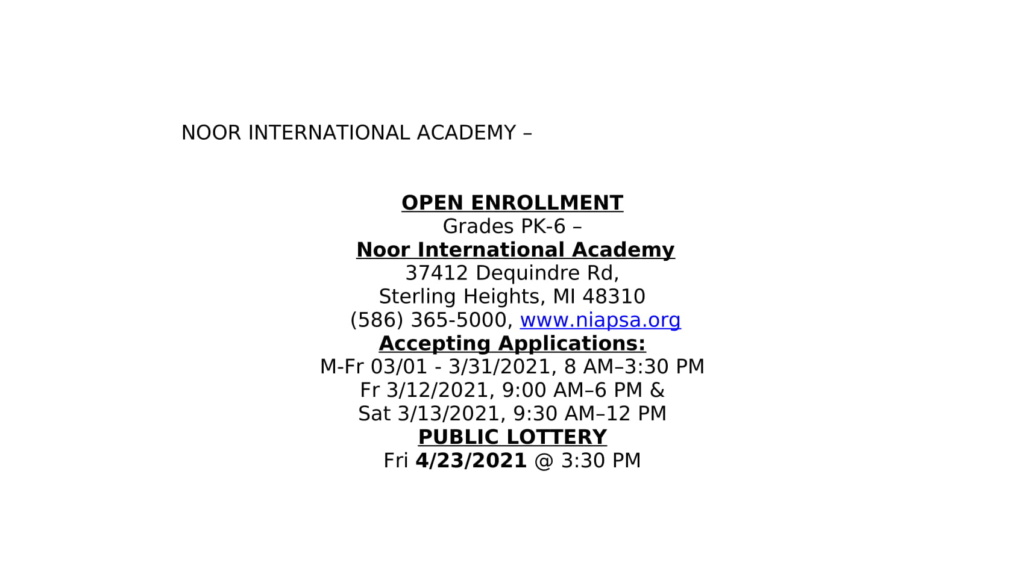 ANNOUNCEMENT: NOOR INTERNATIONAL ACADEMY