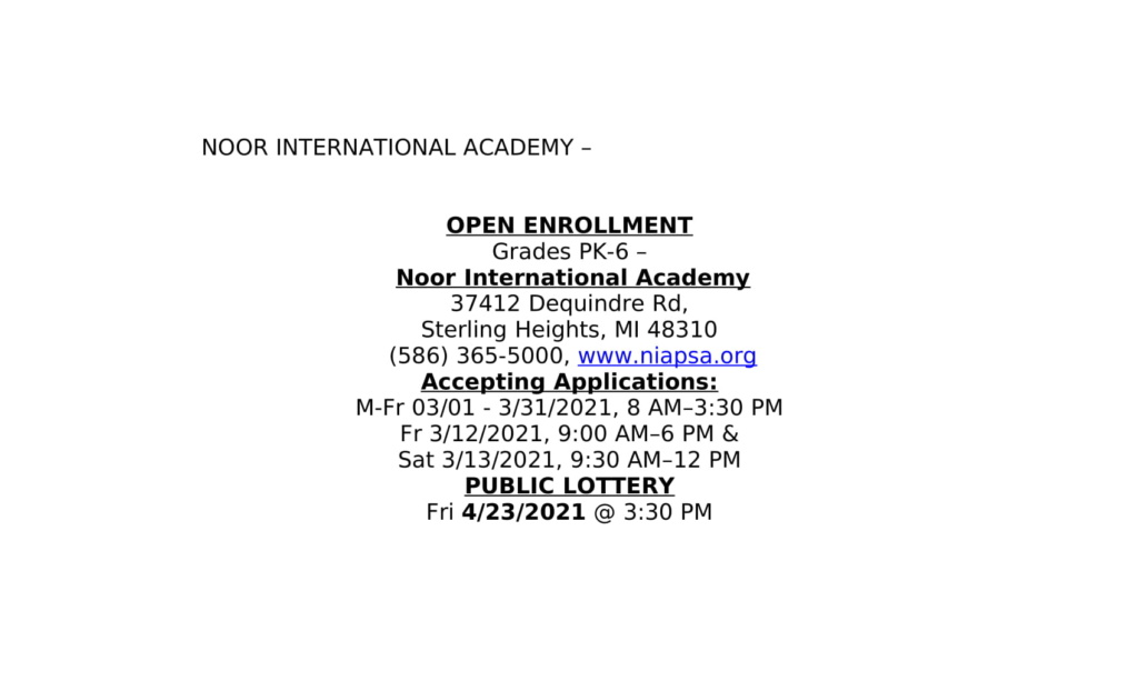 ANNOUNCEMENT: NOOR INTERNATIONAL ACADEMY