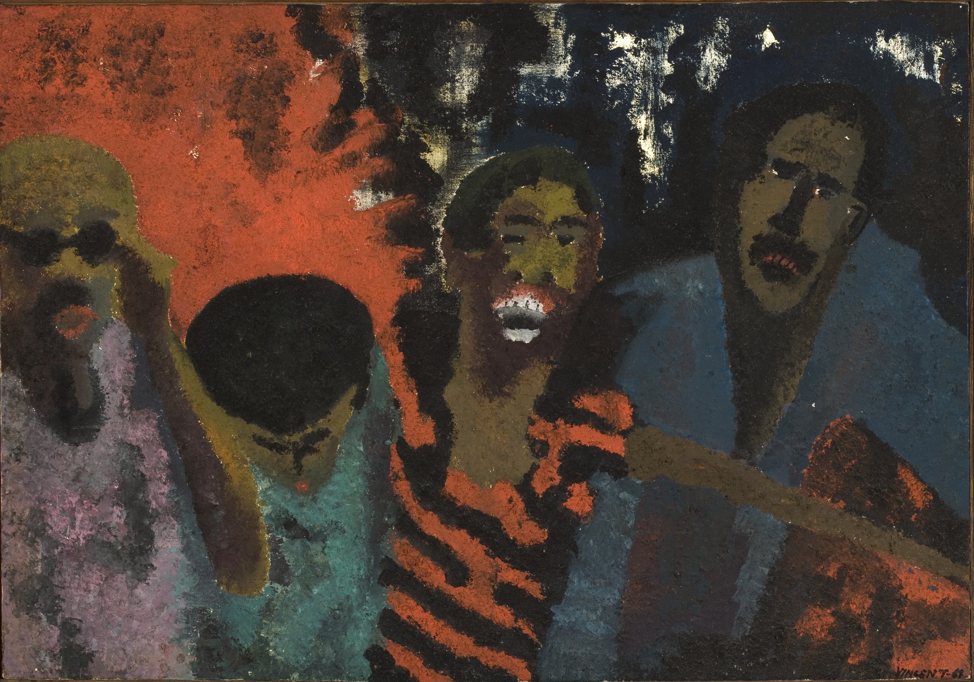 Black Arts Movement (BAM) Active in New York 1965–76 and founded by poet and playwright Amiri Baraka in response to Malcolm X’s death. These artists emphasized racial pride and African heritage in art that reflects black culture and experiences. BAM members were politically militant and often racial separatist. This section features “Southern Pasture” by Benny Andrews (1963), “The Fire Next Time” by Vincent Smith (1968) and Hale Woodruff’s “Ancestral Memory” (1966).