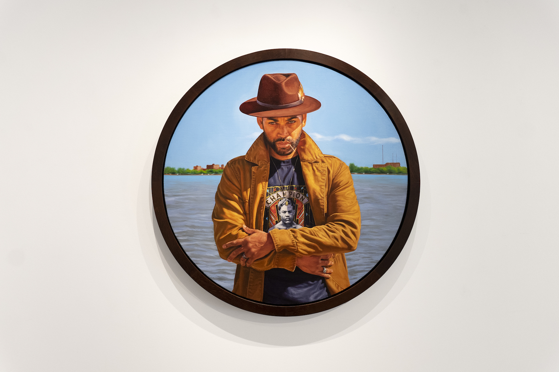 Mario Moore has a passion for digging into the past to find the stories that are the foundation of his beautifully rendered paintings. Extensive research of the subject matter is a fundamental component of his practice. Moore’s previous series have included examinations of the role of African Americans in the Civil War, the presence of African Americans at Princeton University and his family’s history in Detroit. Inspired by the study of “A Fluid Frontier: Slavery, Resistance and the Underground Railroad in the Detroit River Borderland,” Wayne State University Press, Moore’s research for the Midnight and Canaan exhibition led him to navigate the history of the Underground Railroad in the Canadian border cities of Detroit, Michigan and Windsor, Canada. Moore was particularly drawn to the compelling story of the anti-slavery activists, Thornton and Lucie Blackburn. The Blackburn’s had escaped slavery in Kentucky but after two years of freedom they were recaptured in Detroit. Their incarceration inspired the local Black community to come together in protest resulting in the Blackburn Riots of 1833. (This is recognized as the first instance of a race riot in the United States.) Ultimately the Blackburn’s succeeded in their quest for freedom and settled in Toronto where they built a home and a prosperous business.