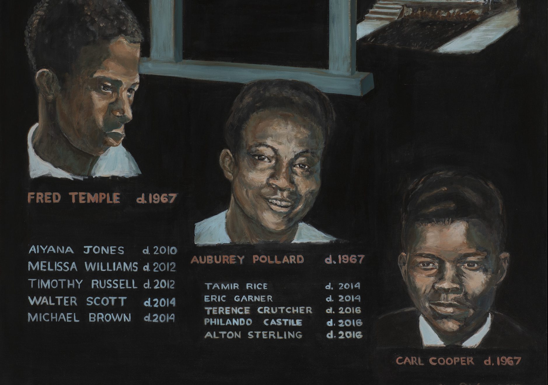 Image: “1967: Death in the Algiers Motel and Beyond,” 2017, Rita Dickerson, acrylic on canvas. Courtesy of the artist.