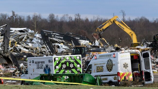 More than 100 people were trapped under a partially collapsed Amazon warehouse following the storms.