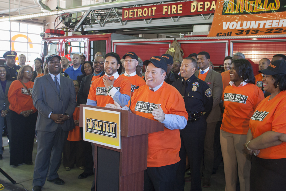 The city’s Public Safety Center in southwest Detroit hosted this years kickoff for the annual Angels Night volunteer recruitment campaign. Mayor Mike Duggan was joined by a coalition of community and business leaders who want to keep the positive momentum of Detroit going and they are calling on all Detroit residents to do the same. “ I’m calling out all Detroiters to get involved. We can watch the news and shake our heads, or we can get out and make a change in our community,” says District 6 manager Rico Razo.
