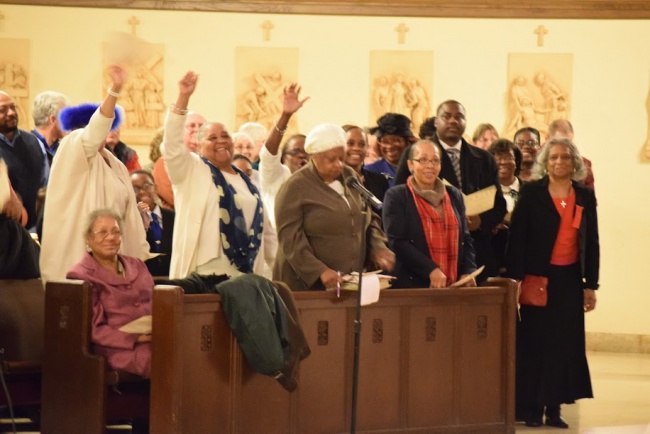 Over 50 congregations were represented at the Commitment Ceremony of the Detroit Regional Interfaith Voice for Equity (DRIVE) on Sunday afternoon, Jan. 31. Five hundred and fifty people attended the spirited 90-minute ceremony, co-chaired by Rev. Aramis Hinds of Breakers Covenant International Church in Detroit, and Rev. Louise Ott of Congregational Church of Birminghmam UCC. The congregations were welcomed to Gesu Catholic Church by the Pastor, Rev. Robert Scullin, SJ.