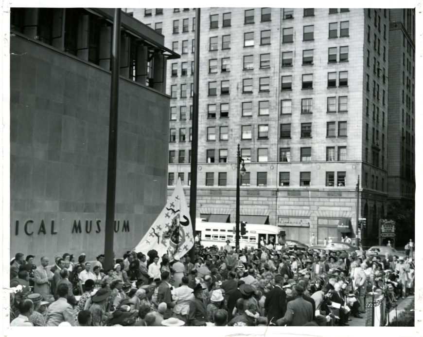 From the Detroit Historical Society archives: this photo is of the dedication ceremony of the current DHM building in 1951.
