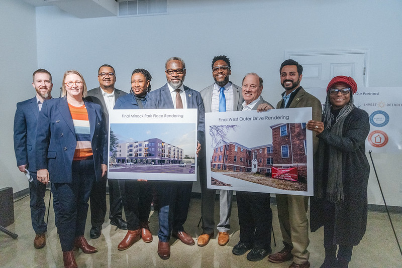 Mayor Mike Duggan and Wayne County Executive Warren Evans stood alongside developers Cinnaire Solutions and the Grandmont Rosedale Development Corporation (GRDC) to mark a moment of progress in Detroit’s Grandmont Rosedale neighborhood. With the grand opening of The Residence at West Outer Drive and the groundbreaking of Minock Park Place, these two projects symbolize a commitment to creating more affordable housing for Detroiters.