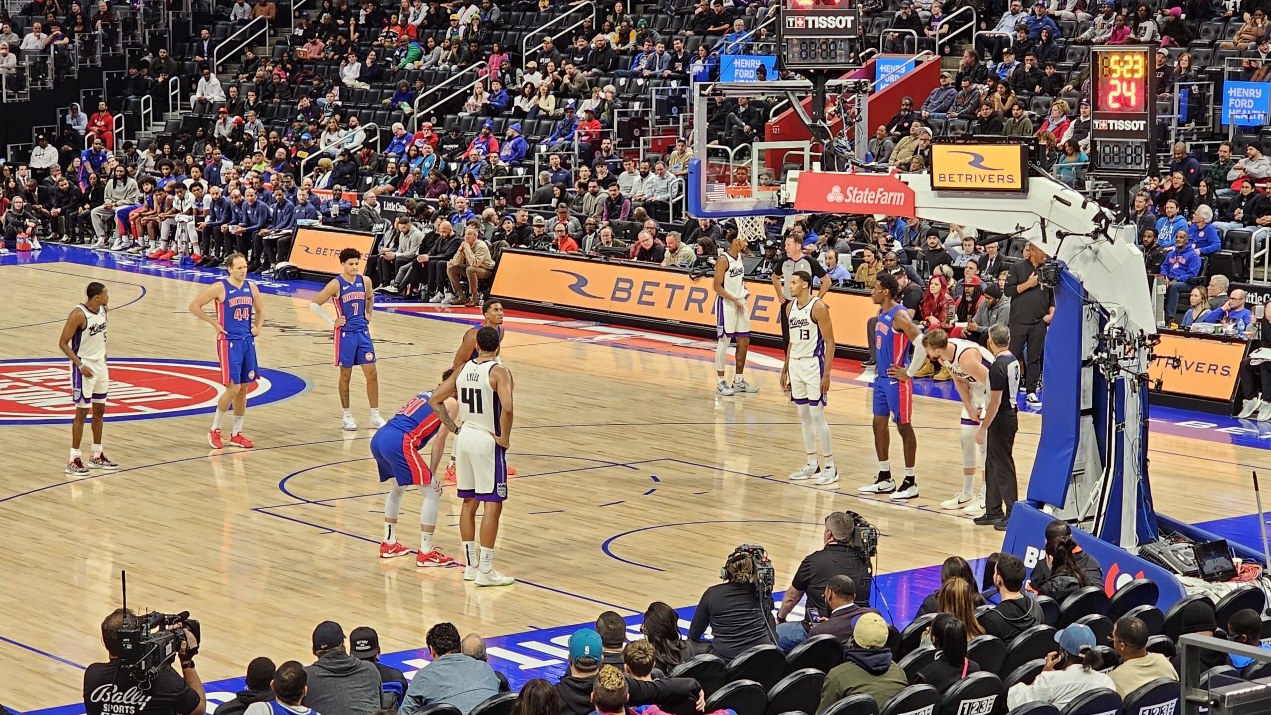 The seesaw third quarter saw the Pistons fall by as much as 15, 83-68, but they clawed back on thanks to some sharpshooting by little-used reserve forward Joe Harris, who knocked down three three-pointers in six minutes of third-quarter action. Burks went on his own 10-0 run to close out the third and bring the home team to within three points, 98-95, as the third quarter ended.
