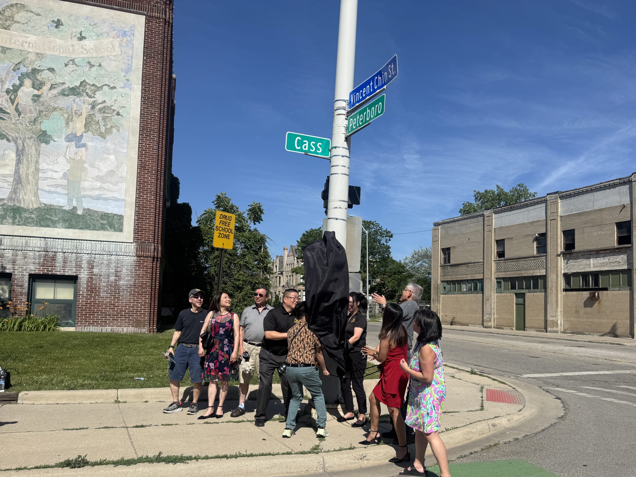 Local lawmakers joined Asian American leaders on Cass and Peterboro Monday to unveil a street sign above Peterboro Street honoring the late Vincent Chin.