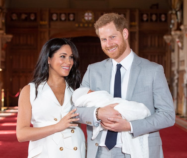 Prince Harry with his wife, the Duchess of Sussex, and their newborn baby Archie in May of 2019. Pool/Reuters