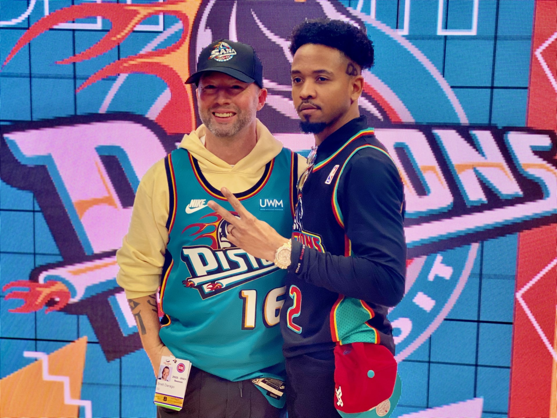 (Photo: Keith “Downtown Deuce” John with Detroit Pistons DJ Chachi.)