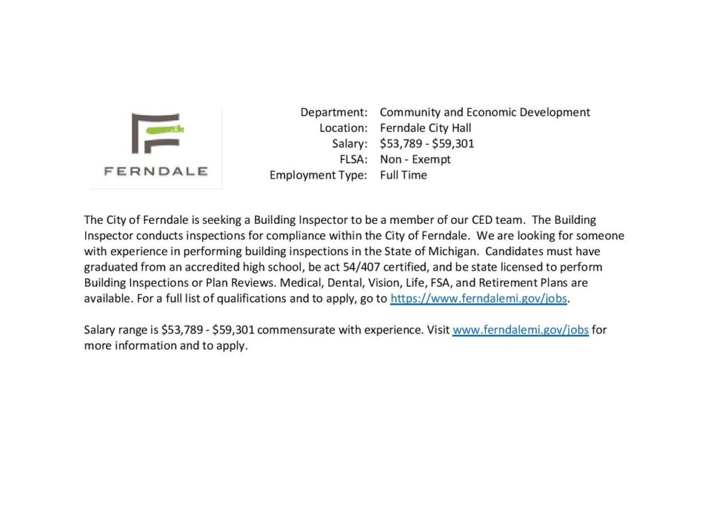 HELP WANTED: City of Ferndale Community and Economic Development Chicago Defender Newsroom 5 years ago