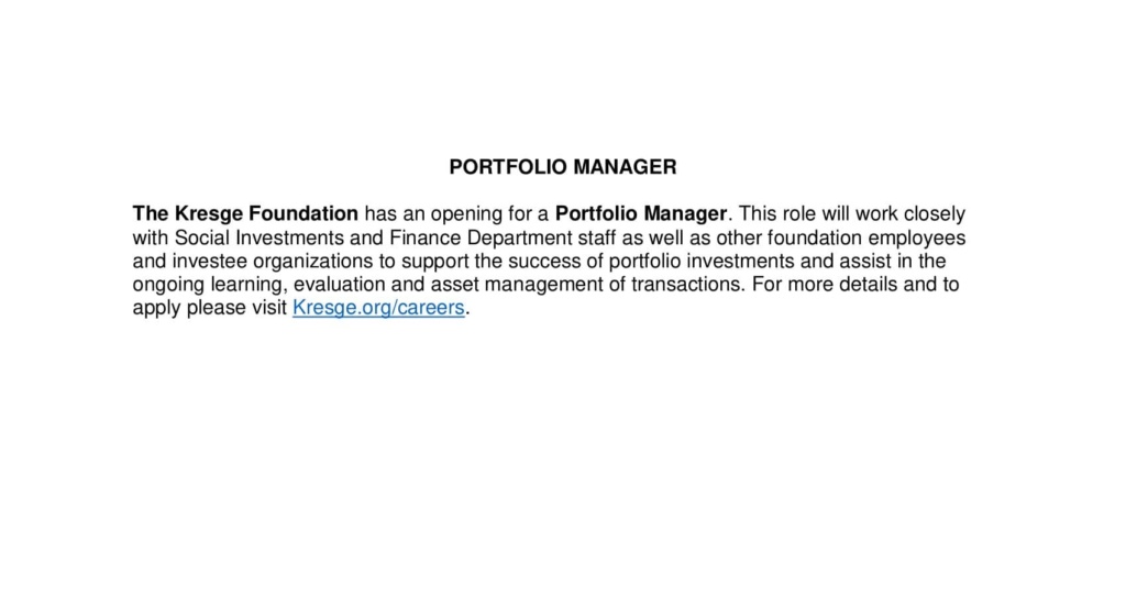 Kresge Foundation Portfolio Manager