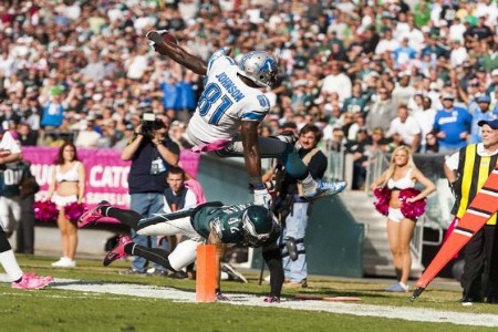 Then, on the final drive of regulation, the hold-your-breath moment came from Calvin Johnson, the all-pro receiver who lived up to his “Megatron” moniker with six catches for 135 yards. Johnson’s 16-yard sideline catch was so uncanny — he stretched, tapped his toes and hung onto the ball while crashing out of bounds — that two officials missed the call and ruled it incomplete.