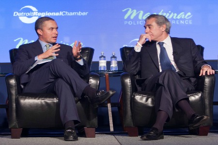 Harold Ford Jr., former Democratic Congressman moderates a Q&A session with Carlos Gutierrez, former George W. Bush Commerce Secretary. Gutierrez delivered a keynote address at the 2013 Mackinac Policy Conference organized by the Detroit Regional Chamber