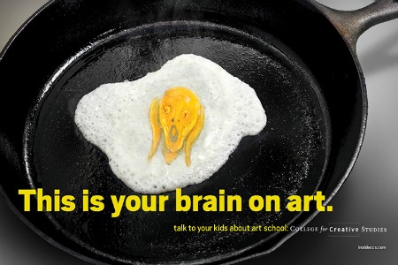 Aspiring artists at the College of Creative Studies in Detroit, MI have created a series of PSA’s adapted from concepts seen in some of the most classic works of art. One example is the statement that getting into art will cause your brain to turn into the egg version of Edvard Munch’s painting ‘The Scream’. It’s a fancy adaptation of the horrific 1980s PSA that likened a person’s brain on drugs to a fried egg.