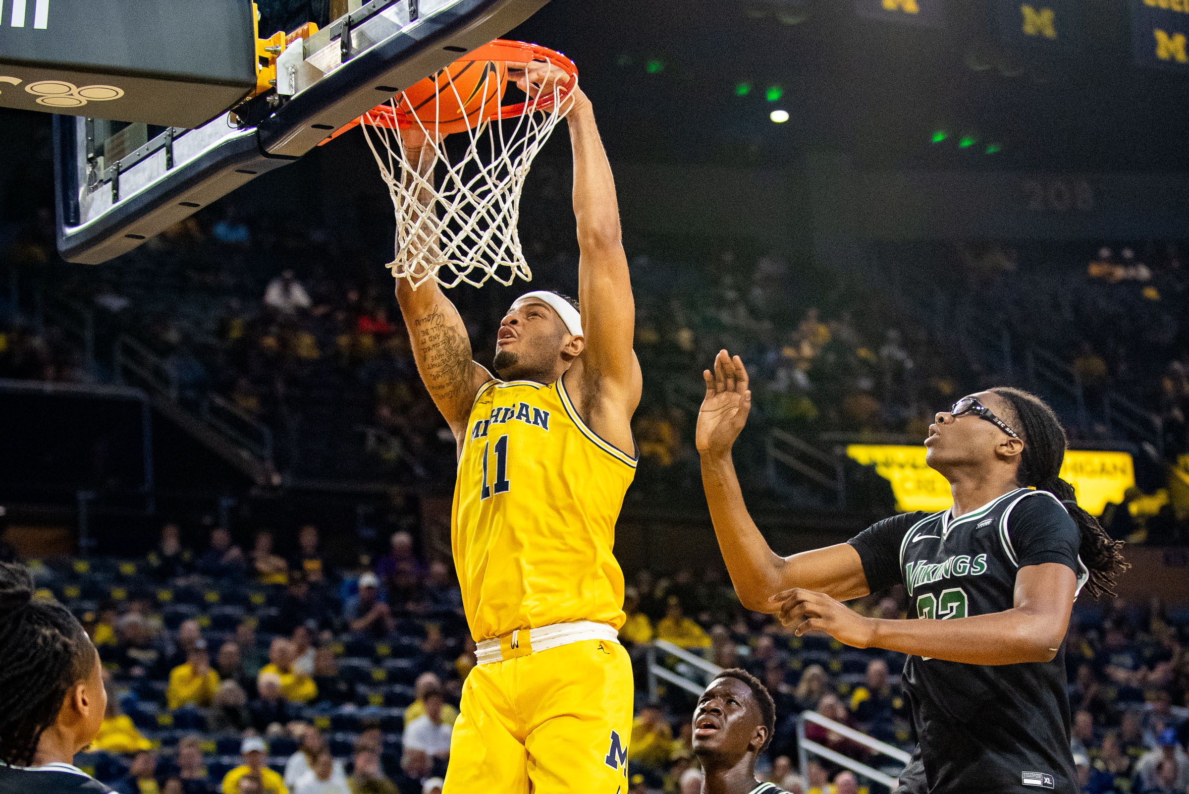 A second half performance that was just as impressive as the first, the Wolverines continued to get fast break points and stops on defense. Michigan had eight block shots on the night, three each from their two seven-footers Vladislav Goldin and Danny Wolf.