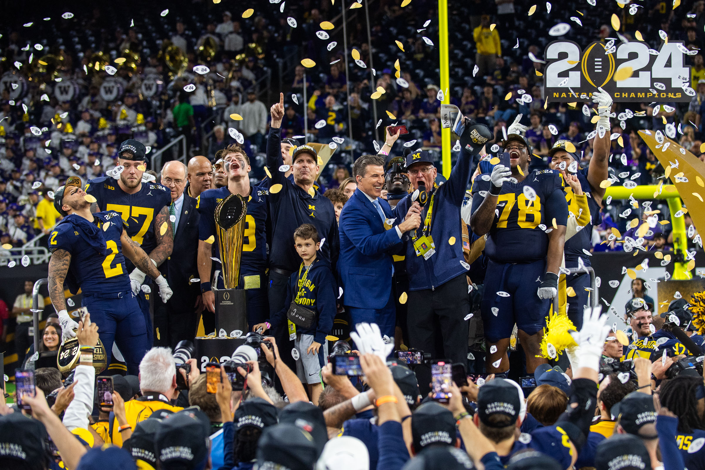 In just two plays, Corum had his second touchdown of the game (57th of his career), scoring on a one-yard run and Michigan could start to smell victory with just under four minutes left. Washington’s next possession ended with four straight incomplete passes, the last on fourth down giving Michigan the ball back just under two minutes left. J.J. McCarthy would kneel twice and the celebrations could begin. The Michigan Wolverines were the 2024 College Football National Champions, ending a 26-year period without winning the title. It marked Michigan’s third national championship in the AP Poll era (1948, 1997).
