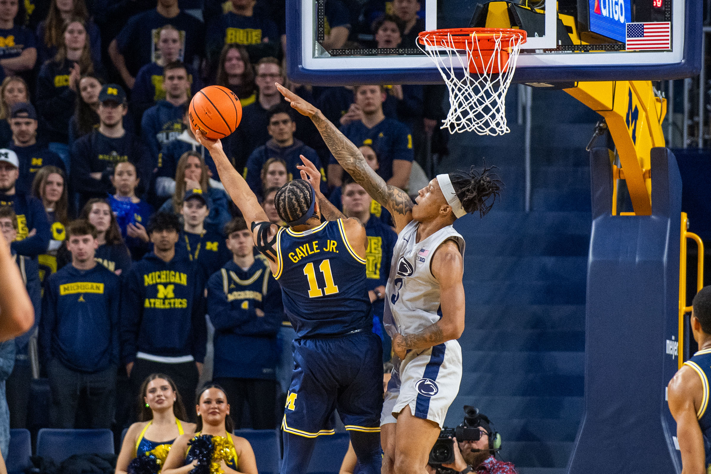 Penn State opened the second half with the first field goal to break the tie but then Michigan had a 12-5 run to go up by seven and eventually eight points midway through the second period. However the fans in maize and blue couldn’t relax as the Nittany Lions fought back, continuously cutting into the Wolverines lead to tie the game with four minutes left and then taking a five point lead with two minutes remaining in the contest.