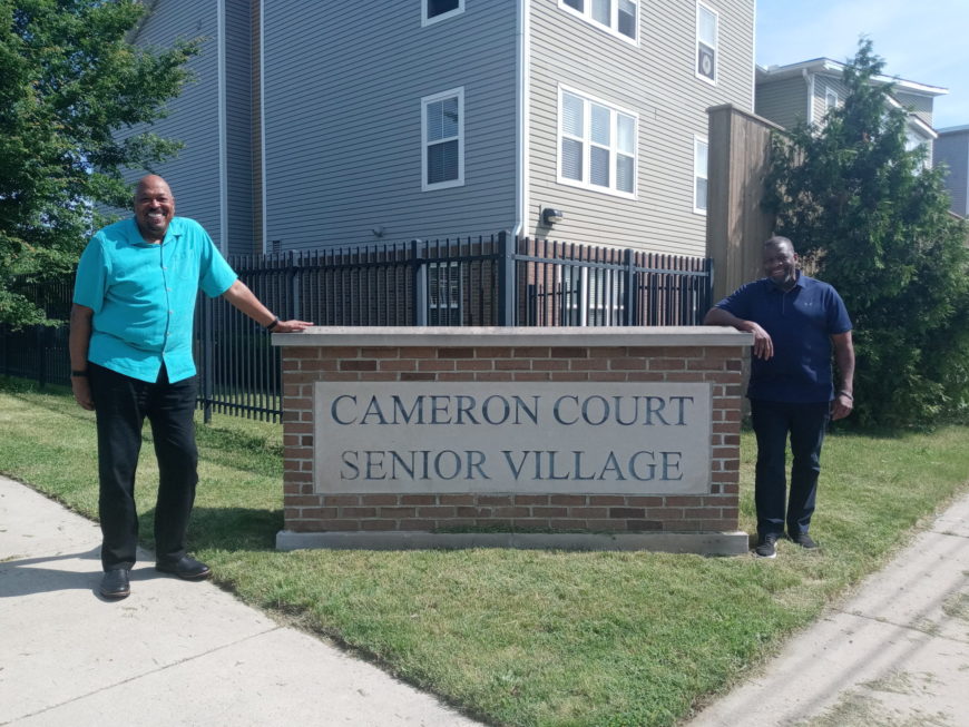 Daryl Carter left, and Ron McDonald in front of Cameron Court in Detroit.