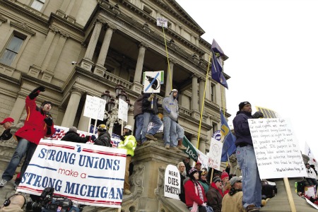 Collective bargaining rights got their roots and firm support during the administration of two former moderate Republican governors, George Romney and William Milliken. Why is Snyder taking a different path?