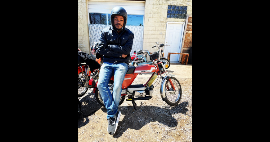 Detroit resident Kyle Williams is a man on the move and uses his Italian motorbike to get around Detroit and its environs.