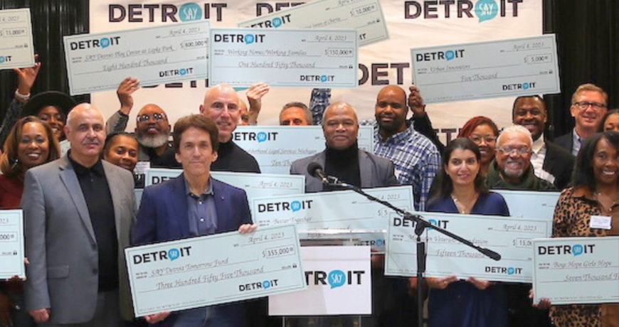 Big blue checks and grateful smiles filled the room at StartupNation Media Group in Birmingham, Mich, as donations form the 11th annual SAY Detroit Radiothon were disbursed. Funds totaling more than $1.83 million were raised last December and after months of anticipation community partners and SAY Detroit initiatives were awarded from $5,000 to $800,000. SAY Detroit Founder Mitch Albom led the presentation that awarded over two dozen partners and community organizations.