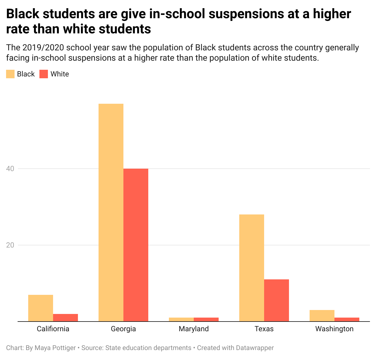 In an analysis from the Center for Civil Rights Remedies at the UCLA Civil Rights Project and the Learning Policy Institute, experts found that not only were Black students disciplined in-school at higher rates than white students, but out-of-school disciplinary actions were also more extensive for Blacks.