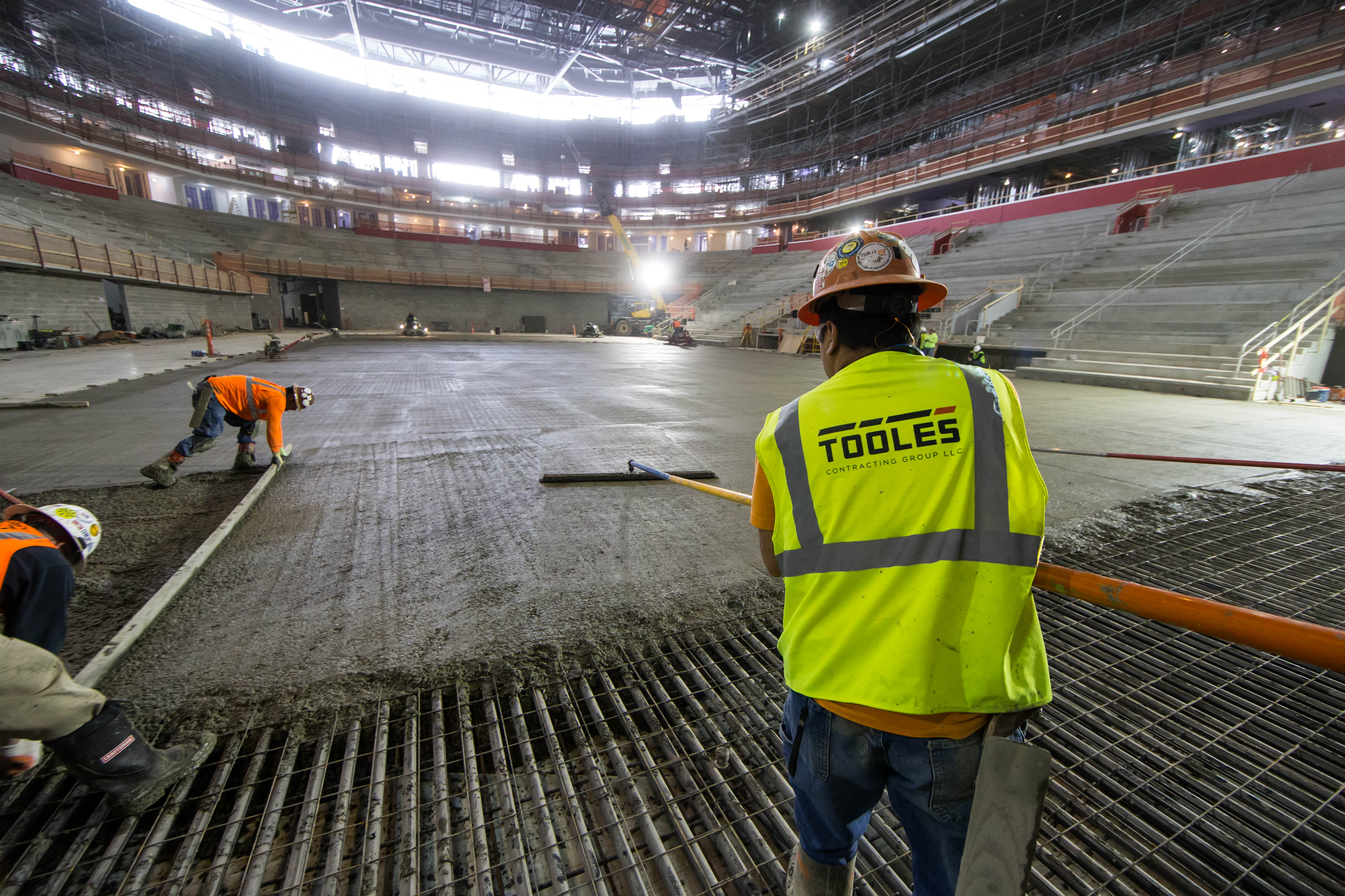 This week’s construction action at Little Caesars Arena includes a day-long concrete pour for the main ice. Rink construction is conducted at standards that meet NHL requirements. Construction on the arena’s interior can be watched 24-hours a day here: https://www.districtdetroit.com/live-web-cam