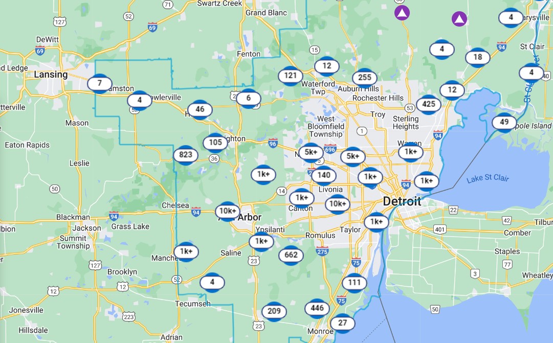 The storms, which began shortly after 3 p.m. in several Southeastern Michigan regions, is having the most impact on residents in the western Wayne County and eastern Washtenaw County but residents as far south as Temperance, as far west as Chelsea, as far north as Caseville, and as far east as Port Huron are all without power.
