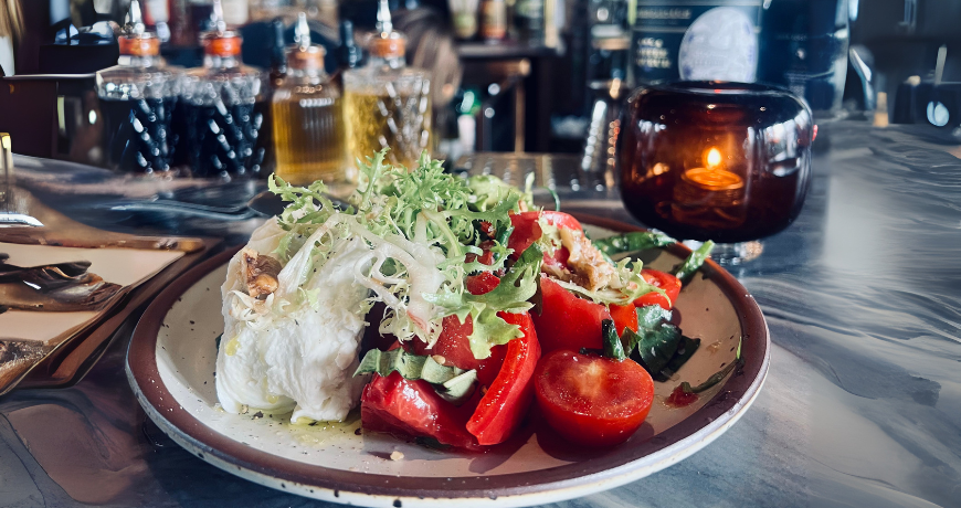 Start with the pickled beet hummus; bright, tangy, and silky smooth. Add a generous swipe of the housemade salted honey brown butter on fresh bread, and you’ve got a snack that feels indulgent without trying too hard. Both are made in-house and available at the Culinary Market, and yes, I took some home.