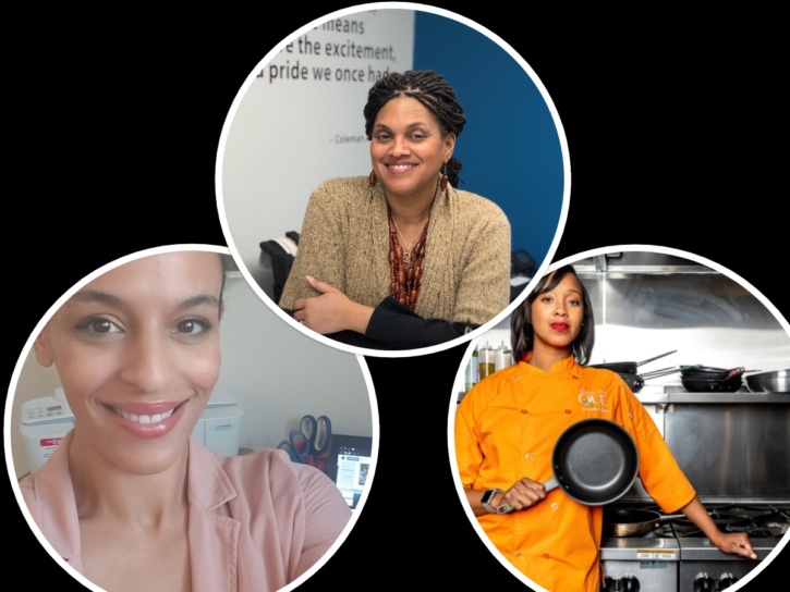 Local branding strategist Linda Harper, left, uses hacks for days to keep her money right and tight. Local designer Karen Burton, center, encourages simple home design updates during quarantine to spruce up a home office and other places. Local chef Quiana “Que” Broden of Cooking with Que encourages eating healthy and affordably.