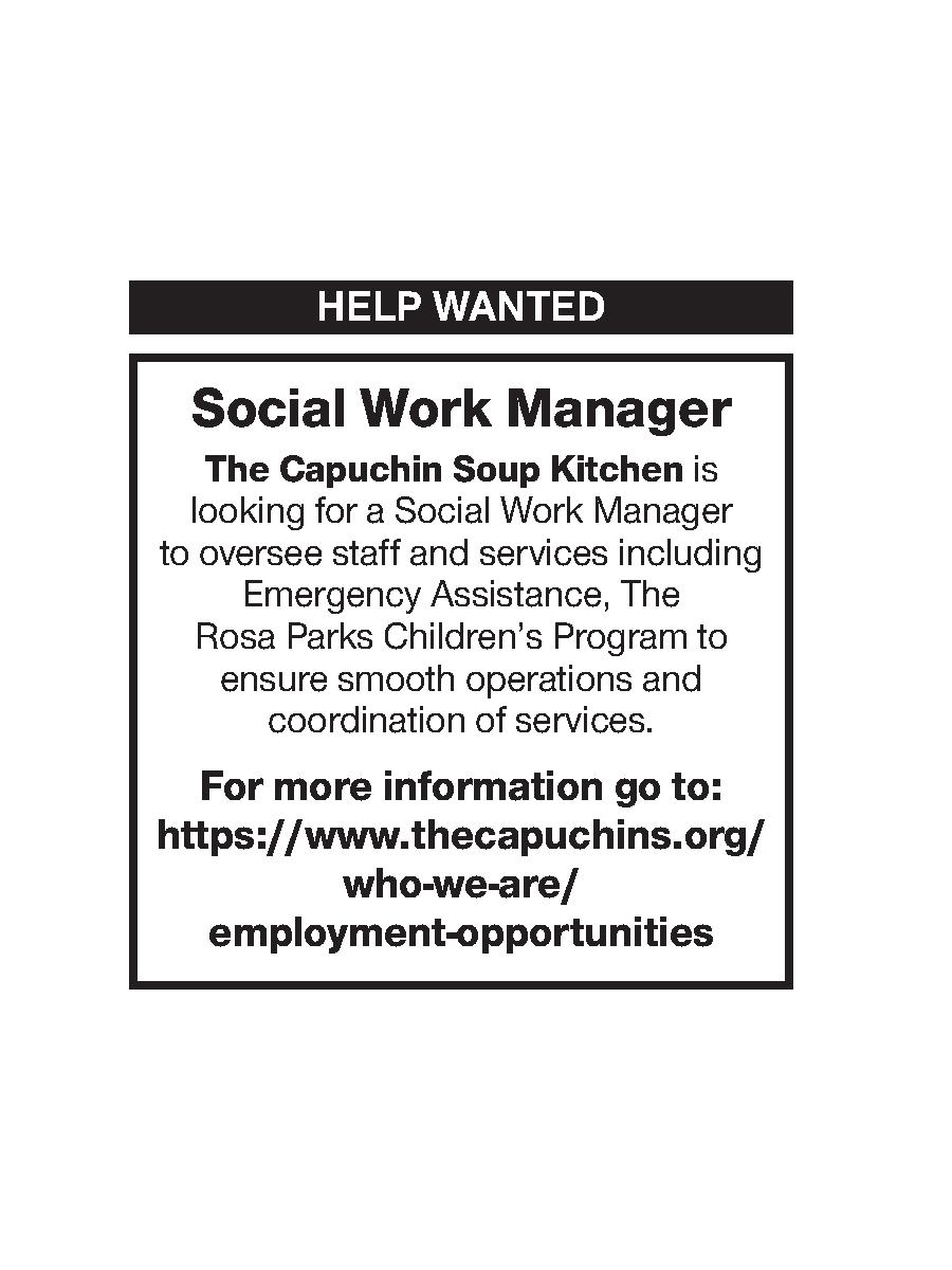 Social Work Manager at The Capuchin Soup Kitchen Alan Hunt II 6 years ago Apply at https://www.thecapuchins.org/who-we-are/employment-opportunities.