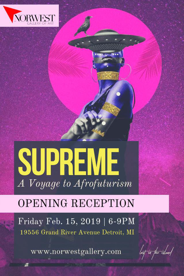 In celebration of Black History Month and the one-year anniversary of Norwest Gallery of Art, presents “Supreme a Voyage to Afrofuturism.” SUPREME is a multidisciplinary art exhibit that depicts the cultural aesthetic of Afrofuturism, as a developing collision of science-fiction technology with African diaspora.