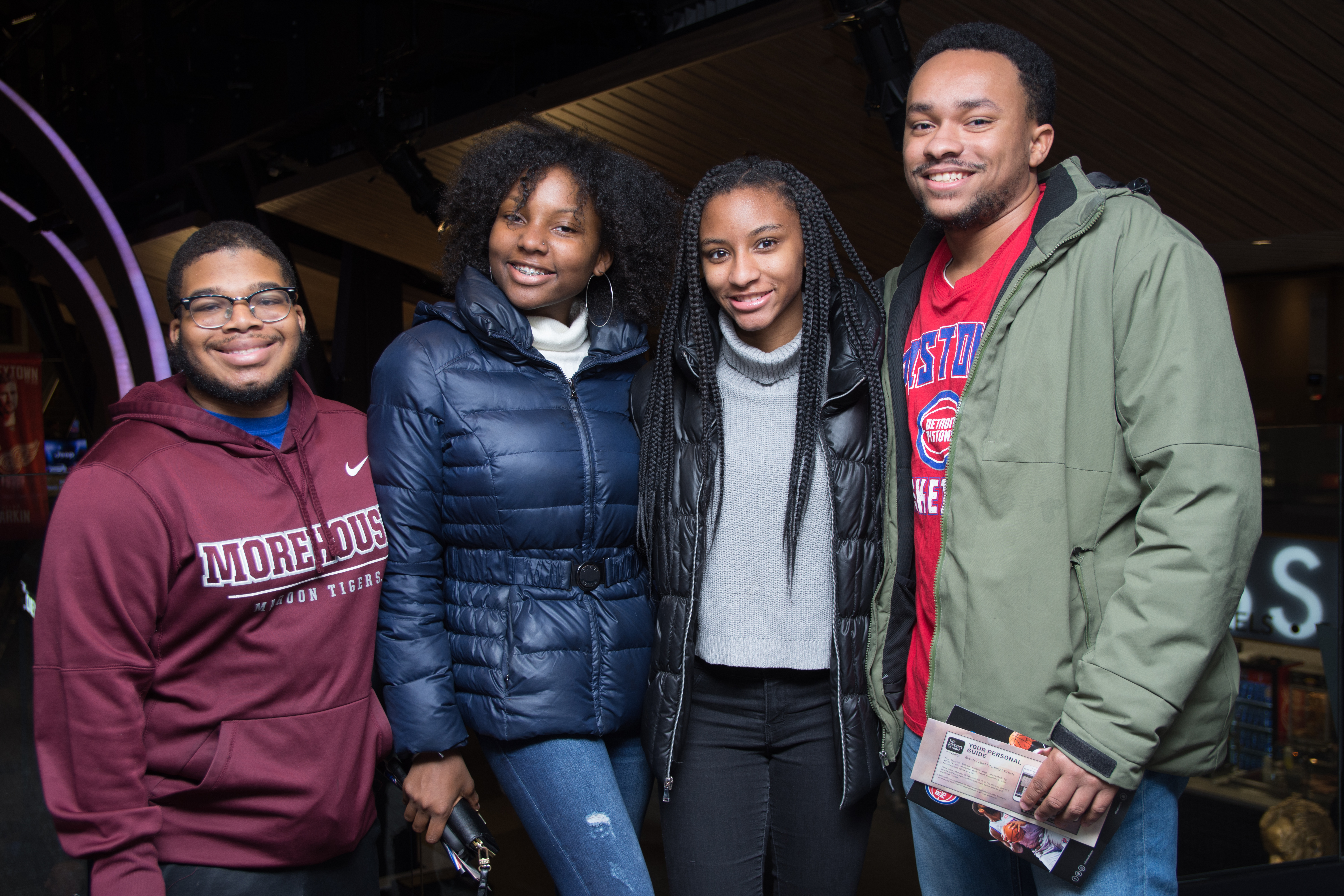 It was a festive night of reunion and celebration as TCF Bank and the Michigan Chronicle hosted former recipients of the Students Wired For Achievement and Greatness (S.W.A.G.) Scholarship Awards at the Pistons game on December 23. Reconnecting students attending college in Michigan, and those home for holiday break from schools such as Spelman College and Morehouse College, the S.W.A.G. scholars were treated to a holiday dinner and thanks to the Pistons organization, had the opportunity to watch the pre-game player warmups courtside and take a shot on the court following the game.