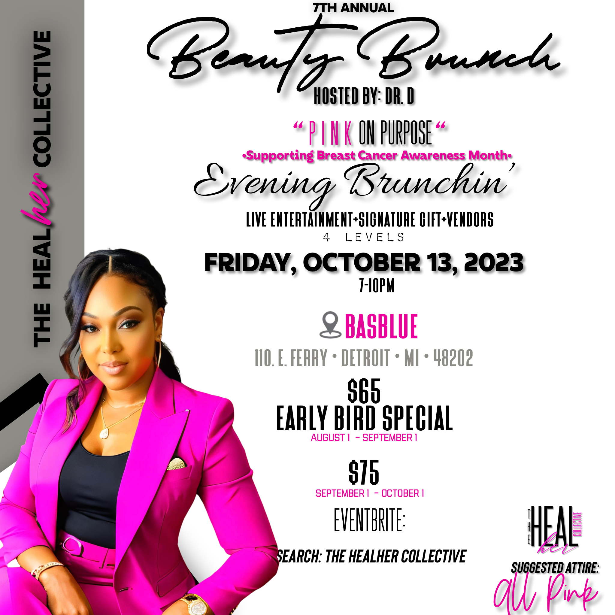 Detroit is abuzz with excitement as the 7th Annual HealHer Collective Beauty Brunch approaches. Set to take place on Friday, October 13, 2023, from 7:00 PM to 10:00 PM at BASBLUE, located at 110, E. Ferry Detroit, MI 48202, this much-anticipated event is set to be an unforgettable evening filled with food, entertainment, shopping, and unwavering support for Breast Cancer Awareness Month. Hosted by the renowned Danielle “Dr. D” Cato, this year’s Beauty Brunch promises to be a remarkable experience, with a compelling theme – “Pink On Purpose.”