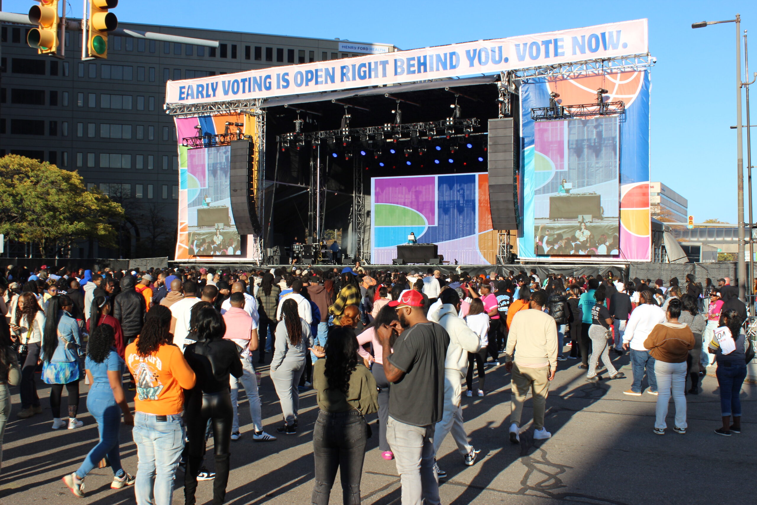 If you simply wanted to go to the concert and have a good time, the free ticket you received in your email was all that you needed. But if you wanted to sit down in the shade any time during the 7-hour event, you needed access to a guarded VIP area with its hundreds of tables and chairs. Of course, the only way to obtain a VIP pass was to vote early at a station that just so happened to be only a few feet away from the VIP area. It was a slick setup, but it worked. Hundreds of registered Detroit voters cast their ballots and the entire event went off without an incident.