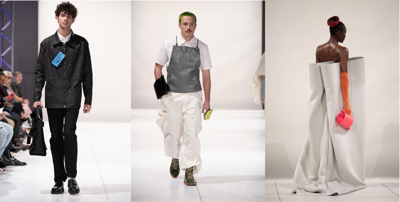 The event showcased capsule collections from nine senior student designers, including Jacob Emmett, Jerome Fulton, Mikayla Hoak, Nikki Park, Sofia Proen, Ja’maiya Ryan, Cameron Sucaet, Stiven Woznicki and Fulbright Scholar, Mehran Musta. The collections reflected the personal identities, experiences, and diverse talents of the students, drawing inspiration from countries such as Palestine, Russia, Korea, and NYC. Materials such as leather, neoprene, tulle, and snake skins were used to represent their individual and collective visions of the world.