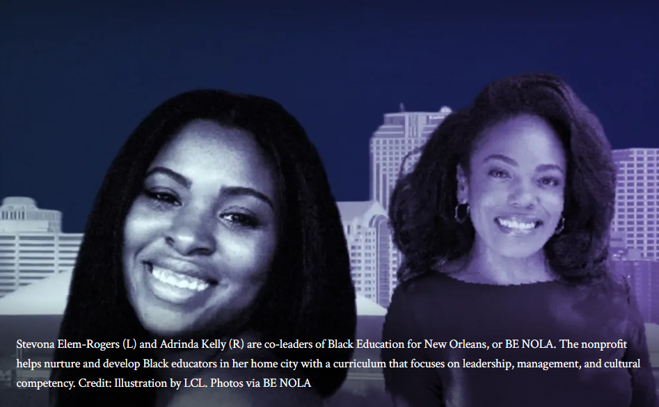 Now Kelly and her colleague, Stevona Elem-Rogers, are among those working to reclaim that legacy. They are co-leaders of Black Education for New Orleans (BE NOLA) a grassroots nonprofit that invests in Black teachers and promotes Black-led schools to increase the number of Black teachers in New Orleans classrooms.