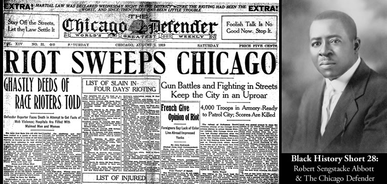 1905—Robert Sengstacke Abbott founds the Chicago Defender newspaper calling it “the world’s greatest weekly.” Indeed, he would build the Defender into the largest circulation and most influential Black newspaper of its day. The Defender, which became the most widely circulated Black newspaper in the country, came to be known as “America’s Black Newspaper” and made Abbott one of the first self-made millionaires of African American descent. In 1919, Illinois Gov. Frank Lowden appointed Abbott to the Race Relations Commission. Abbott died of Bright’s disease in 1940 in Chicago, Ill.