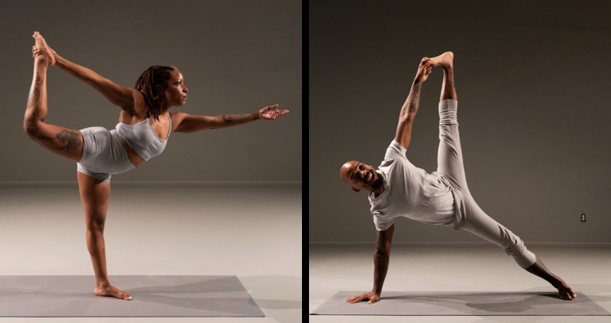 Business Manager Lisa Hillary Johnson, left, and Owner Jamel Randall hit yoga poses.
