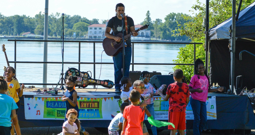 Stepping into its 13th season, the “Reading & Rhythm on the Riverfront” program stands as a lighthouse of literacy and community for Detroit. A testament to our city’s invincible spirit, this program, thanks to General Motors and the Detroit Riverfront Conservancy, has touched over 25,000 lives as guests or volunteers since its inception. Imagine that – 25,000 Detroiters connecting, growing, and thriving together, right on our beloved riverfront.