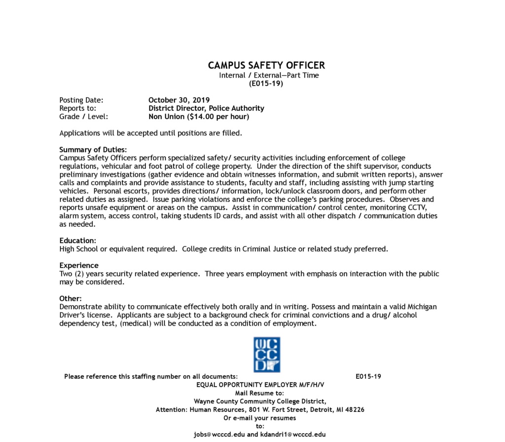 HELP WANTED: CAMPUS SAFETY OFFICER
