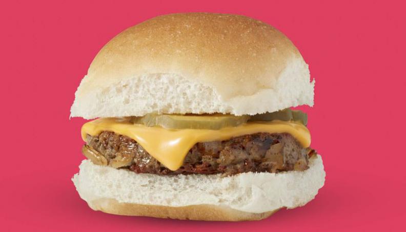 The Impossible Slider is topped with smoked cheddar cheese, pickles, and onions and is served on a signature bun available individually for $1.99.